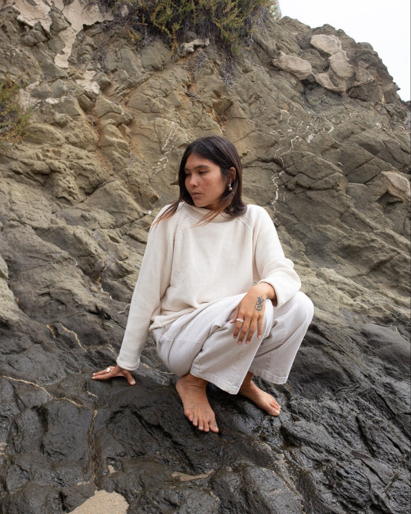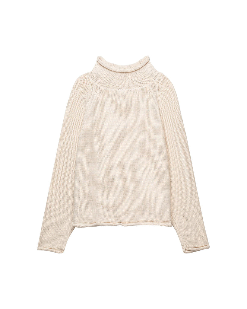 This rollneck sweater was inspired by styles that are decades old and is a utility piece turned chic. It features delicate rolls at the wrists, neck, and waist, and is a mid-weight knit making it wearable in any temp.