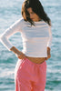 The perfect long sleeved baby tee inspired by the 90's. Features long sleeves and a slightly cropped length. Garment dyed and pre-shrunk.