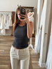 The Adeline Tank is expertly crafted from 100% organic cotton, providing both comfort and sustainability. The ribbed round neck design adds a touch of texture to this versatile tank top. With a professional and objective tone, highlight the benefits of choosing sustainable and high-quality materials.